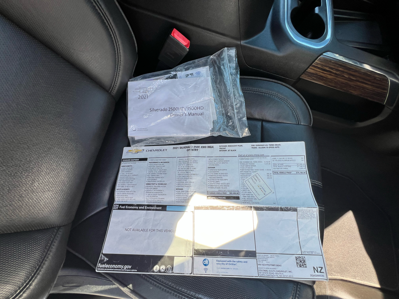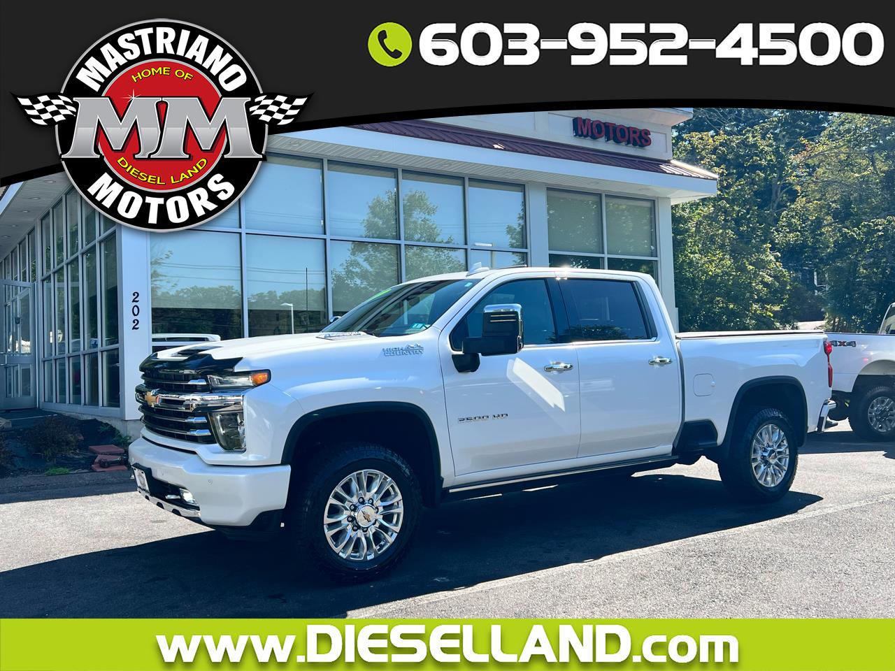 2021 CHEVY 2500HD 4X4 CREW CAB FULLY LOADED HIGH COUNTRY 6.6L L5P DURAMAX DIESEL SHARP TRUCK WITH LOW MILES!!!! POWER LOCKS WINDOWS AND MIRRORS, POWER HEATED AND COOLED HIGH COUNTRY LEATHER SEATS, CARPLAY DISPLAY, BACK-UP CAMERA, CLIMATE CONTROL, AUTOMATIC LED LIGHTS W/ FOGS, POWER SUNROOF, COLLISON AVOIDANCE, 360 CAMERAS, STEERING WHEEL CONTROLS, EXHAUST BRAKE, FACTORY REMOTE START, PUSH TO START, BOSE PREMIUM SOUND, CLOTH FLOOR MATS, WIRELESS CHARGING, HEATED REAR SEATS, PUSH BUTTON 4X4, FACTORY TOW PACKAGE/ TRAILER BRAKE CONTROLLER, POWER RUNNING BOARDS, SPRAY IN BEDLINER, 20" HIGH COUNTRY WHEELS, SOFT TONNEAU COVER, FACTORY BOOKS AND MANUALS, BANKS CHEVY PRE OWNED CERTIFIED 10K MILES AGO!!! SHARP 2021 CHEVY 2500HD 4X4 CREW CAB FULLY LOADED HIGH COUNTRY 6.6L L5P DURAMAX DIESEL WITH ONLY 71K MILES!!!! CREDIT UNION FINANCING AVAILABLE INQUIRE TODAY 603-952-4500!!!!